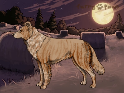 Color: | Roaned Brindle Red and White (Irish) with Isabella Sable and Mask |
