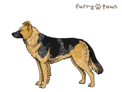 | Color: | Roaned Fawn and White (Piebald) with Black Saddle and Mask |