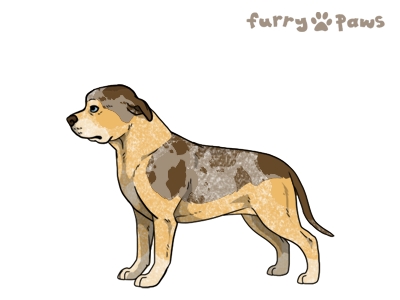 | Color: | Roaned Fawn Merle and White (Piebald) with Chocolate Saddle and Light Undersides |