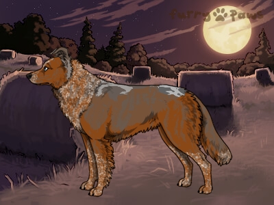 | Color: | Roaned Brindle Red Merle and White (Irish) with Blue Sable |