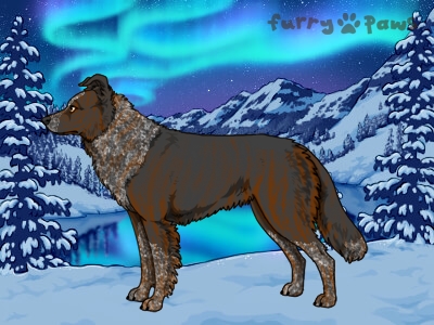 | Color: | Roaned Brindle Red and White (Irish) with Blue Sable |