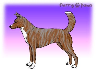Brindle Red and White (Irish) with Faded Isabella Saddle and Light Undersides