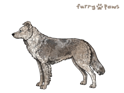 | Color: | Roaned Brindle Silver Merle and White (Piebald) with Blue Saddle |