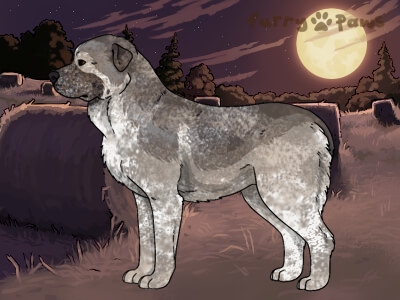 | Color: | Roaned Silver and White (Piebald) with Black Sable and Mask |