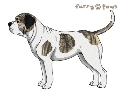 | Color: | Brindle Cream and White (Piebald) with Black Grizzle, Mask, Ticking, and Light Undersides |
