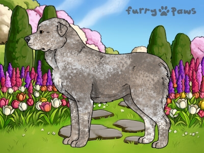 Roaned Cream and White (Irish) with Steel Blue Grizzle, Mask, and Light Undersides