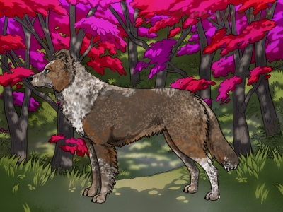Red Merle and White (Extreme Piebald) with Blue Saddle and Ticking