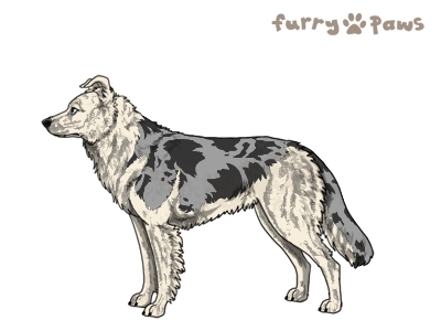 | Color: | Brindle Silver Merle with Blue Saddle |