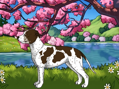 Color: | Brindle Chocolate and White (Piebald) with Silver Points and Ticking |