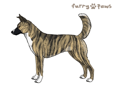 Brindle Cream and White (Irish) with Black Sable, Mask, and Light Undersides