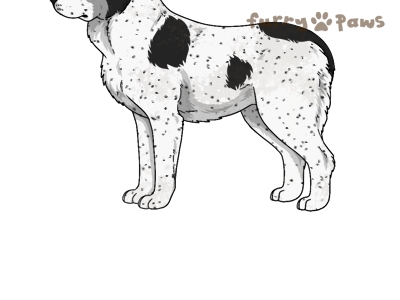 | Color: | Black and White (Piebald) with Ticking and Light Undersides |