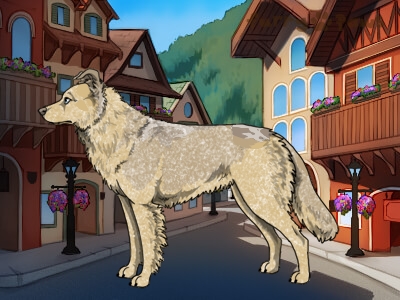 Color: | Roaned Cream Merle and White (Extreme Piebald) with Isabella Sable |