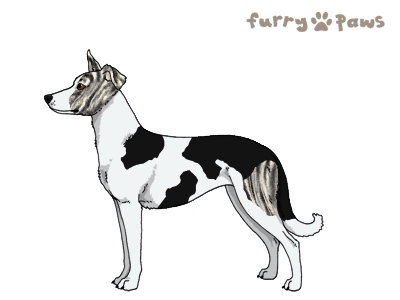 Color: | Brindle Silver and White (Piebald) with Black Saddle and Ticking |