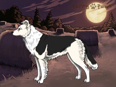 | Color: | Silver and White (Irish) with Black Saddle |