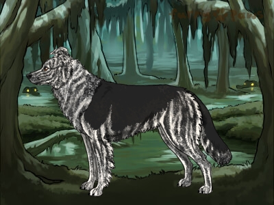| Color: | Roaned Brindle Silver and White (Irish) with Black Saddle |