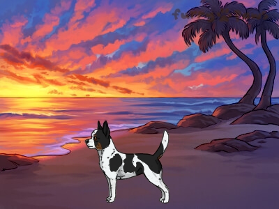 | Color: | Brindle Black and White (Piebald) with Red Points, Mask, and Ticking |