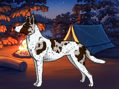 Color: | Chocolate Merle and White (Piebald) with Red Points and Ticking |