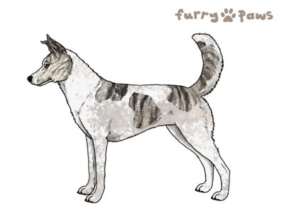 Color:Brindle Silver and White (Piebald) with Black Grizzle, Ticking, and Light Undersides