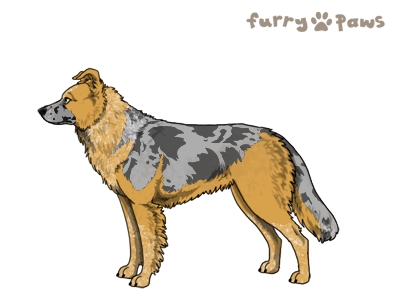 Color: | Roaned Fawn Merle and White (Irish) with Blue Saddle and Mask |