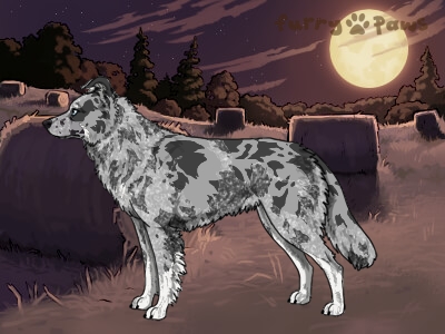 Color: | Roaned Brindle Blue Merle and White (Piebald) with Silver Points and Mask |