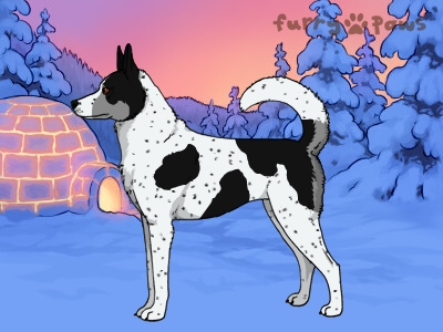 | Color: | Black and White (Piebald) with Ticking and Light Undersides |