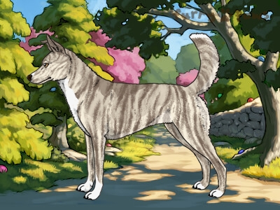 Color:Brindle Silver and White (Irish) with Faded Brown Sable, Ticking, and Light Undersides