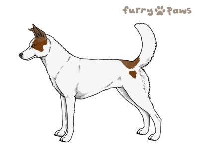 | Color: | Red and White (Extreme Piebald) with Faded Blue Grizzle and Light Undersides |
