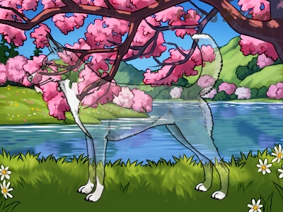 Cream and White (Irish) with Steel Blue Grizzle, Mask, Ticking, and Light Undersides