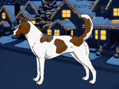 | Color: | Red and White (Piebald) with Steel Blue Sable and Light Undersides |
