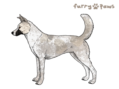 Color: | Silver and White (Piebald) with Steel Blue Grizzle, Mask, and Light Undersides |