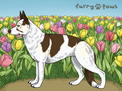 Color: | Silver and White (Piebald) with Chocolate Saddle and Mask |