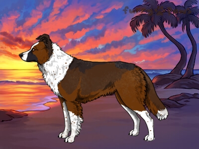 | Color: | Red and White (Irish) with Black Sable, Mask, and Ticking |