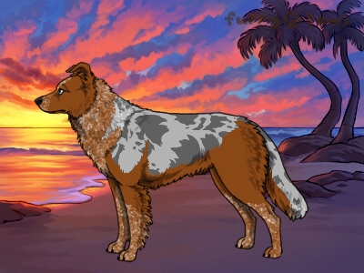 Color: | Roaned Red Merle and White (Irish) with Blue Saddle |