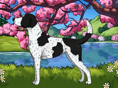 | Color: | Black and White (Piebald) with Ticking |