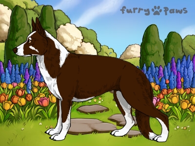 Red and White (Irish) with Chocolate Saddle and Mask