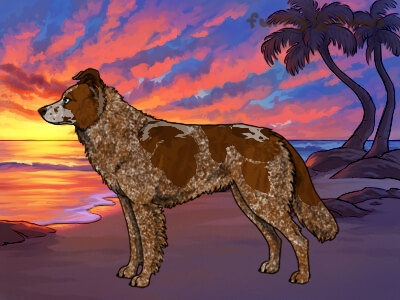 | Color: | Roaned Brindle Red Merle and White (Piebald) with Chocolate Sable and Mask |
