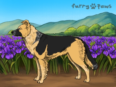 | Color: | Roaned Fawn and White (Irish) with Black Saddle and Mask |