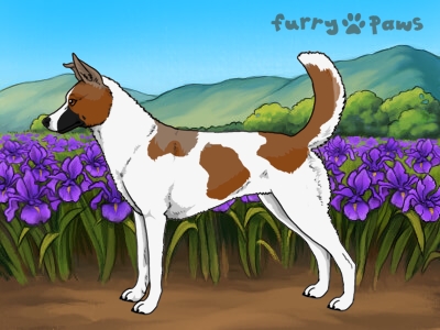 Brindle Red and White (Irish) with Black Saddle, Mask, Ticking, and Light Undersides