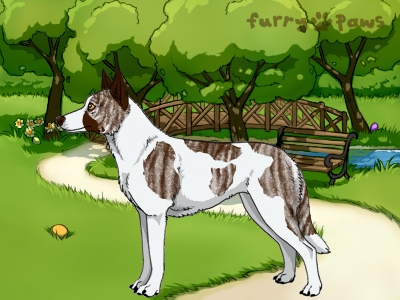 | Color: | Brindle Silver and White (Piebald) with Chocolate Grizzle, Mask, and Ticking |