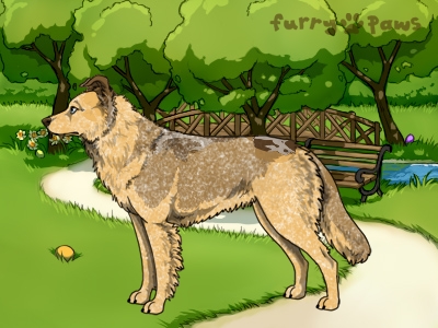 | Color: | Roaned Fawn Merle and White (Extreme Piebald) with Chocolate Sable |