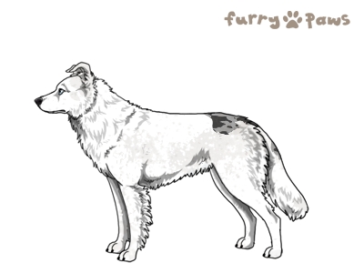 | Color: | Silver Merle and White (Extreme Piebald) with Blue Saddle, Mask, and Ticking |