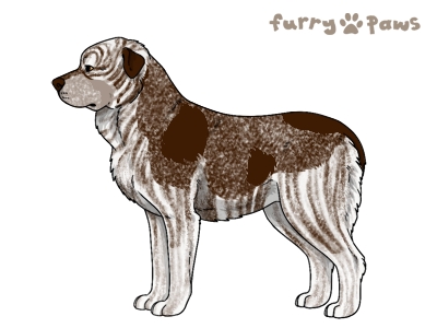 | Color: | Roaned Brindle Silver and White (Piebald) with Chocolate Saddle, Mask, and Light Undersides |