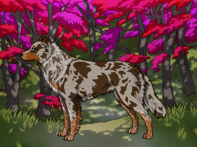 | Color: | Roaned Chocolate Merle and White (Irish) with Red Points |