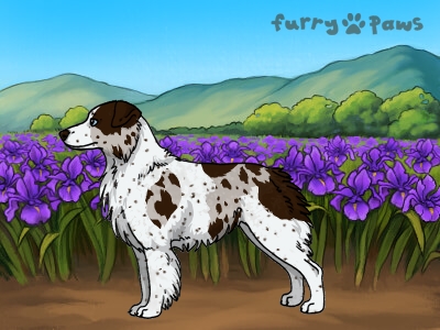 | Color: | Chocolate Merle and White (Piebald) with Ticking |