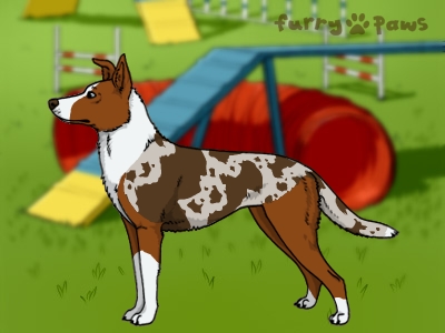 | Color: | Red Merle and White (Irish) with Chocolate Saddle |