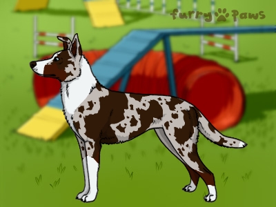 Color:Chocolate Merle and White (Irish) with Red Points