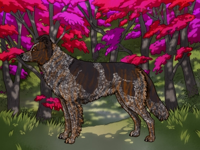 | Color: | Roaned Brindle Red and White (Piebald) with Black Sable |